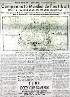 Do meu posto de observação – Vejo o Maracanã sendo inaugurado – provisoriamente - em 16 de junho de 1950. Notem-se as estruturas